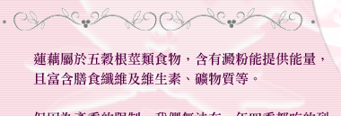 (水量與藕粉、糖的多寡依個人喜好斟酌 )藕粉內含豐富鐵質,病人吃了,能補血,更為有益。